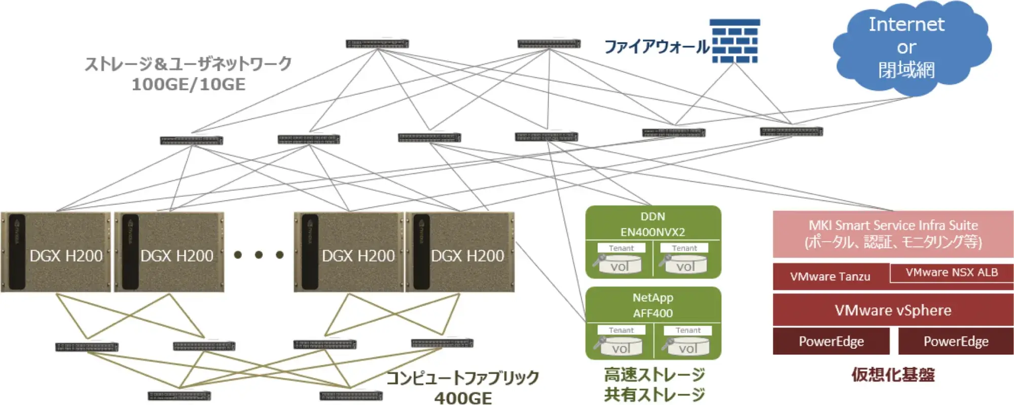 - 各ノードを1.6 Tbpsでロスレスネットワークで接続(GDS、RDMA(RoCEv2))